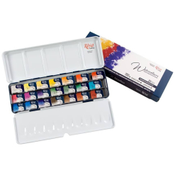 Un set de acuarelă este o colecție de vopsele de acuarelă, pensule și hârtie conținute de obicei într-o cutie sau cutie.