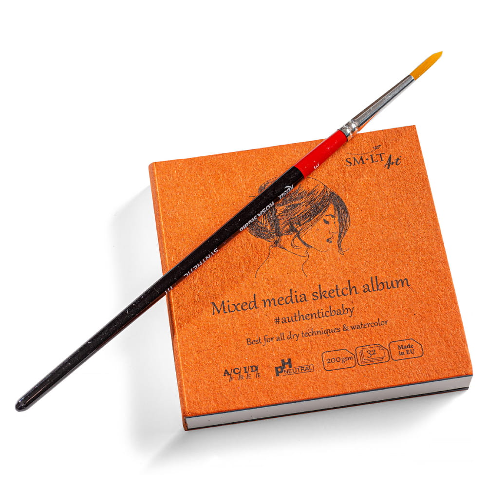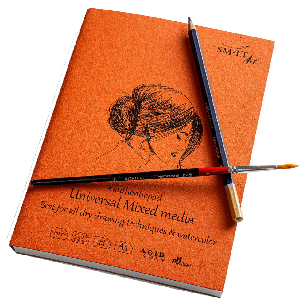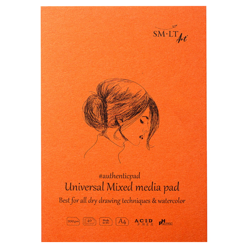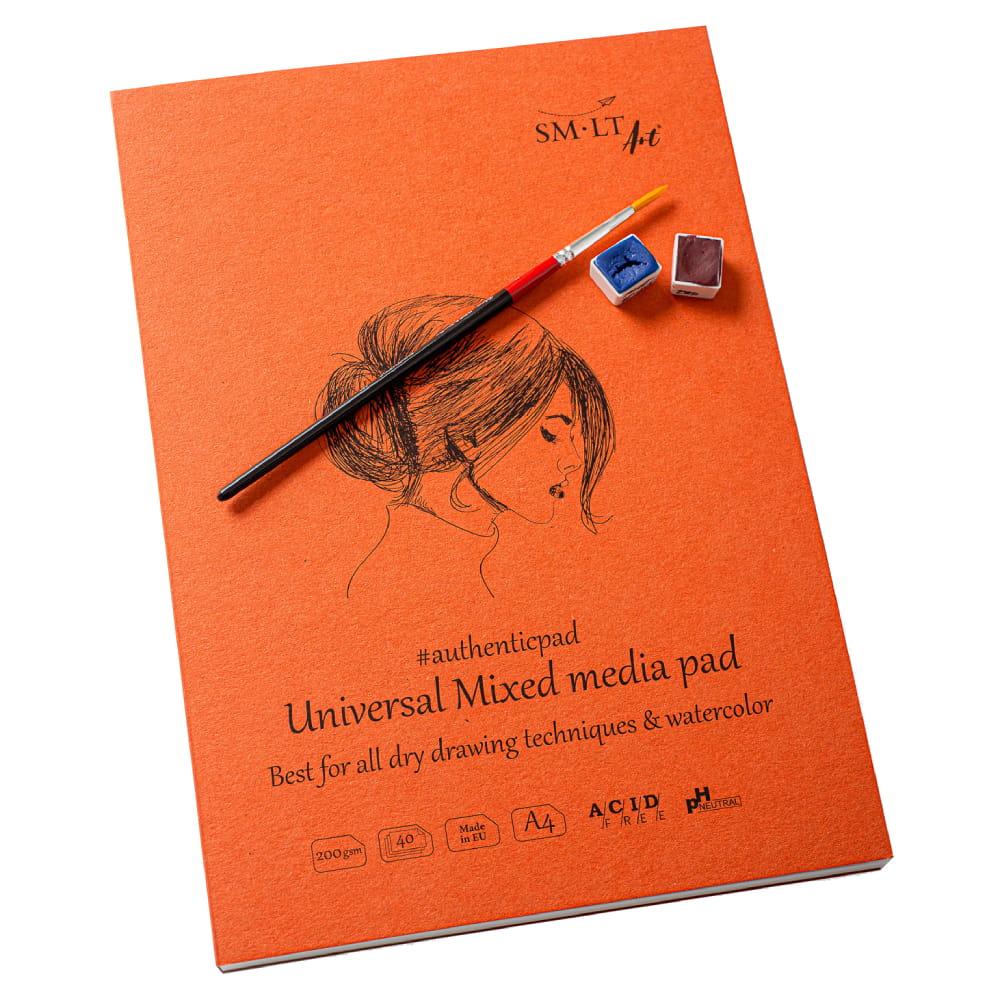 Bloc desen SMLT Authentic Mixed Media – hartie de 200gsm, ideala pentru tehnici variate: acuarela, acrilic, pastel. 40 de pagini, dimensiuni A5, A4 sau 9/9cm, perfect pentru artisti.