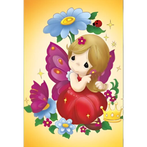 Decorat cu un desen adorabil al unei micuțe prințese cu aripi de fluture printre flori, care poate fi pictat în culorile preferate ale artistului.