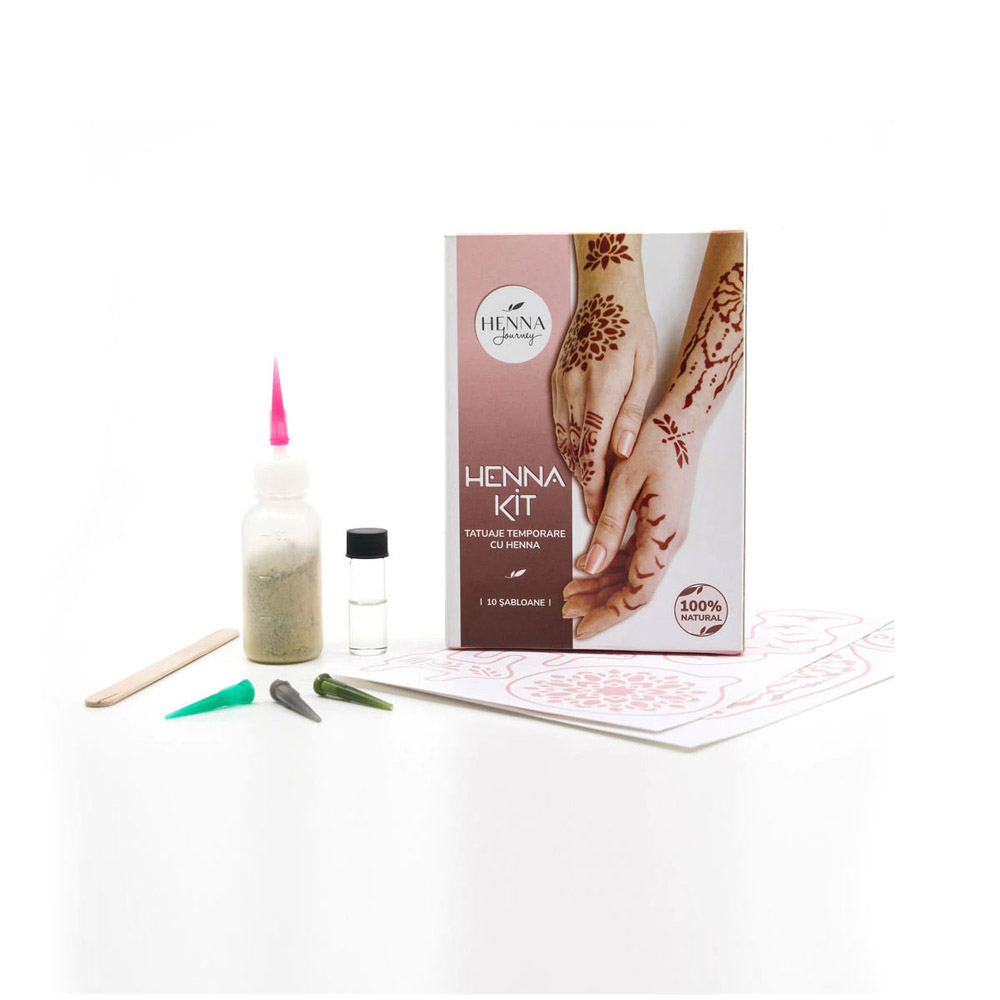 Trusa noastră de henna conține toate ingredientele și accesoriile necesare pentru o experiență completă de henna. Pachetul include 10 sabloane de unică folosință, un aplicator cu vârf subțire, pudră de henna și amestec de zahăr, ulei esențial și instrucțiuni pas cu pas. Tot ce trebuie să adăugați este apă pentru a face pasta.