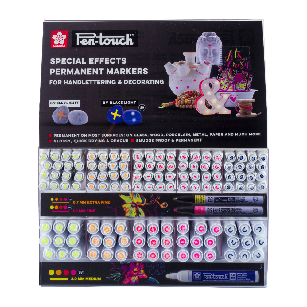 Cu markerele Pen-Touch se poate scrie pe o mare varietate de suprafețe, inclusiv carton, plastic, lemn, sticlă, porțelan, hârtie și metal.