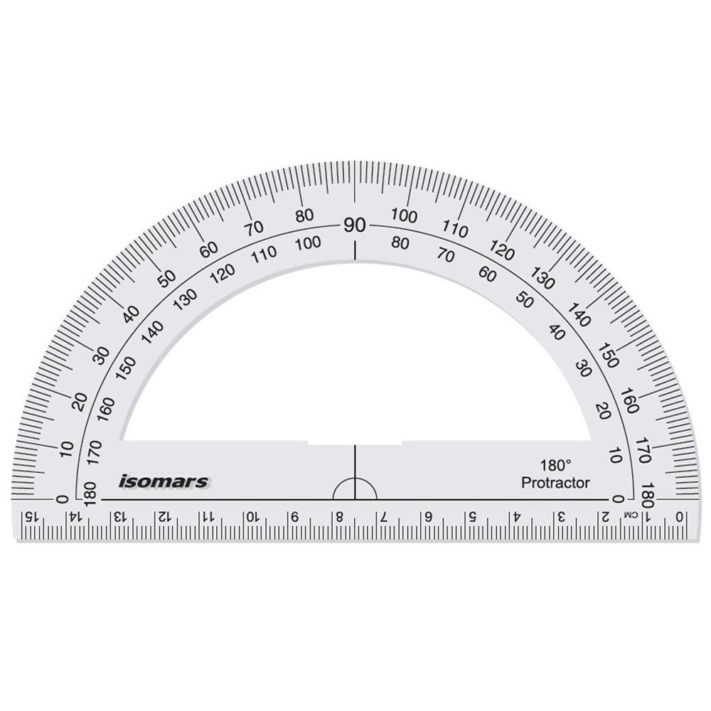 Raportor din plastic transparent 0-180 °, 15 cm.