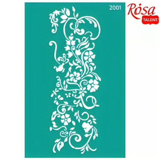 Foloseste un Sablon adeziv 13 x 20 cm nr.2001 – flowers pentru a decora usor si distractiv obiectele dragi. Sabloanele Rosa sunt realizate din material plastic flexibil, autoadeziv, ce permite utilizarea repetata. Pentru rezultate optime, aplicati culori acrilice prin tamponare cu ajutorul unei burete impregnat in culoare. Spalati sablonul imediat dupa folosire.