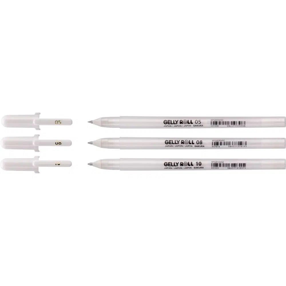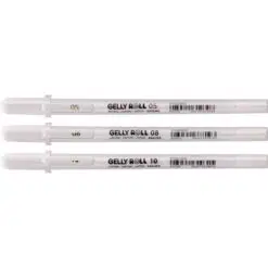 Setul contine 3 pixuri Gelly Roll culoarea alba grosimile 05, 08, 10. De asemenea, poti alege de pe site un pix alb marca Sakura si in format individual.
