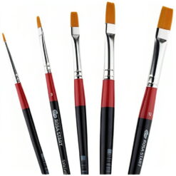 Set cu cinci pensule sintetice plate cu manere lungi pentru pictura in vopsele acrilice, guase sau tempera. Setul contine marimile 2, 3, 6, 10 si 12.
