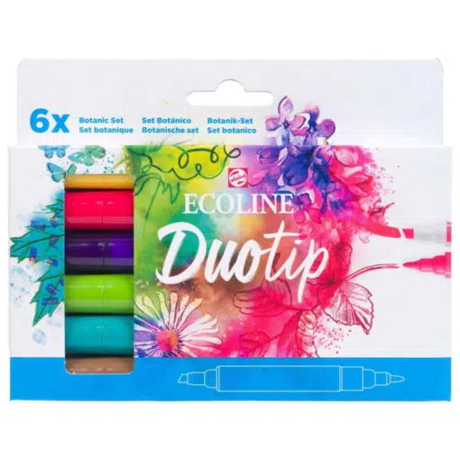 Setul de 6 carioci tip acuarela Ecoline Duotip Botanic oferă o selecție grozavă de culori cu ajutorul carora veti crea desene și ilustrații botanice complexe.