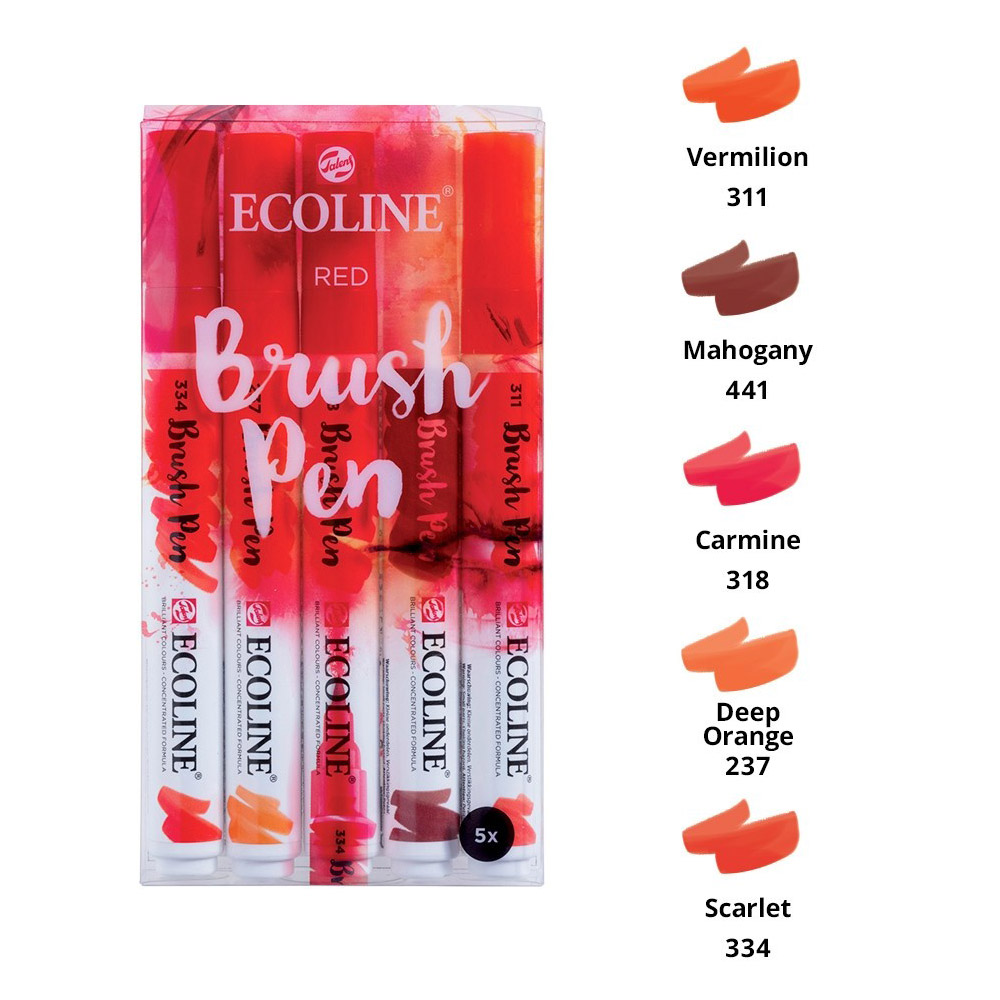 Set Carioci Ecoline Brushpen x 5 Rosu – Culori Pasionale pentru Creatii Artistice Impresionante