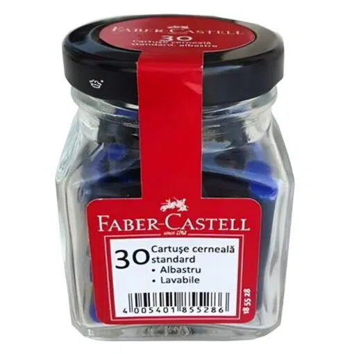 Set cartuse cerneala albastra mici Faber-Castell, borcan 30 buc. – Descriere
