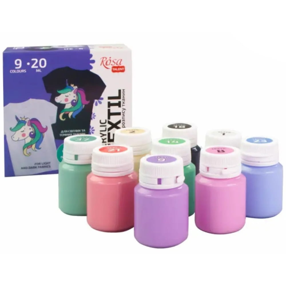 Culorile textile Rosa Talent Unicorn sunt vopsele pigmentate pe baza de apa pentru pictura pe materiale textile sintetice sau naturale, de culori deschise sau inchise, obiecte din piele (marochinarie) sau piele intoarsa.