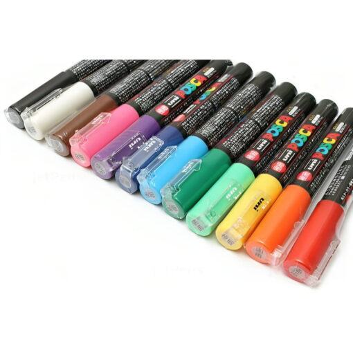 Acest set markere Posca contine doisprezece markere Posca Extra Fine Point, seria PC-1MC, culori de baza. Markerele Posca cu vopsea acrilica folosesc o cerneală intensa, opaca, care poate scrie pe aproape orice suprafață, inclusiv hârtie, fotografii, sticlă, lemn, plastic și metal. Vopseaua acestor markere acrilice poate fi răzuită de pe suprafețele netede precum sticla sau portelanul, dar aderă permanent la suprafețele poroase precum hârtia.