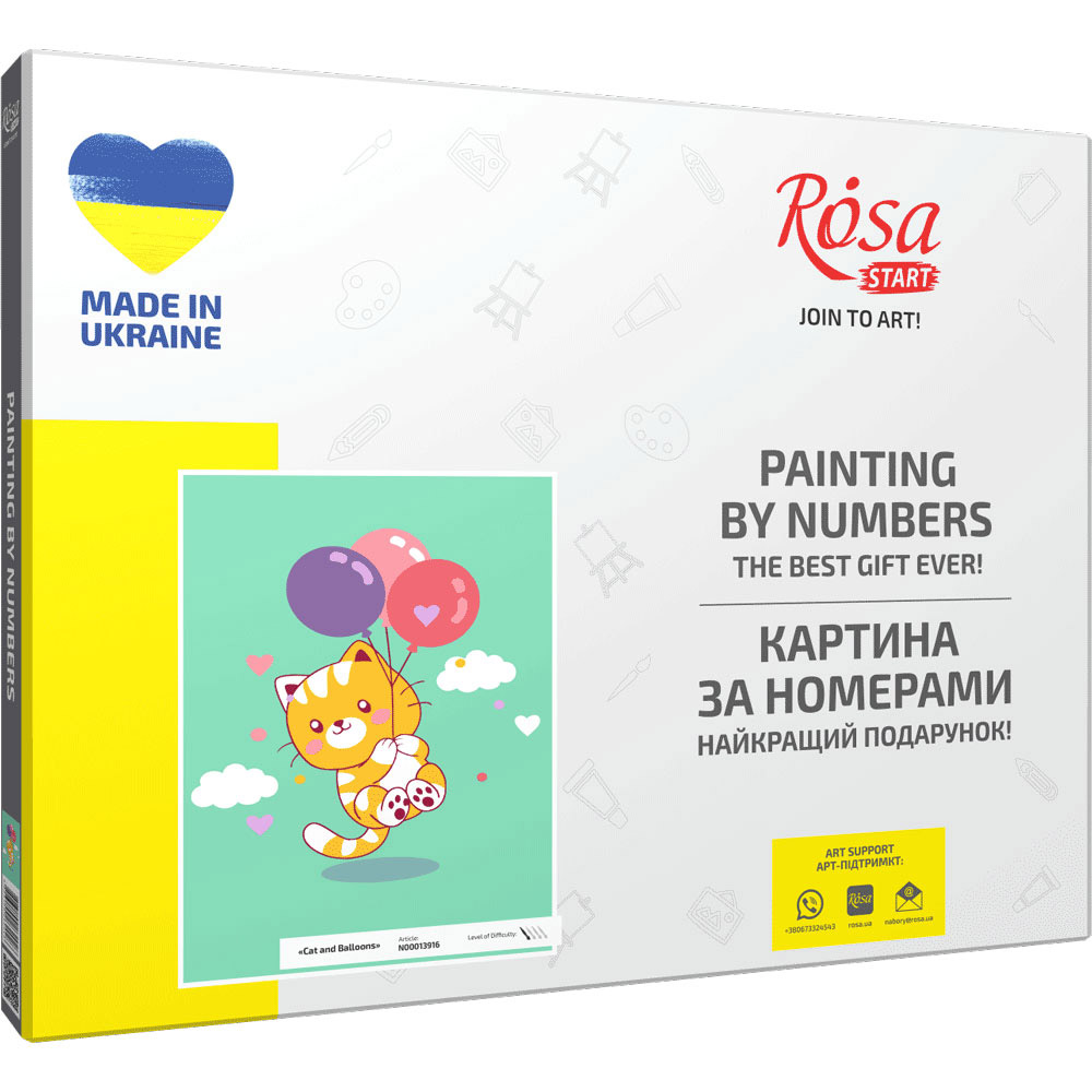 Setul pictura pe numere Rosa 35×45 „Cat and balloons“ face parte din categoria de produse Pictura pe Numere pentru Copii, Pictura pe numere si Hobby Creativ.