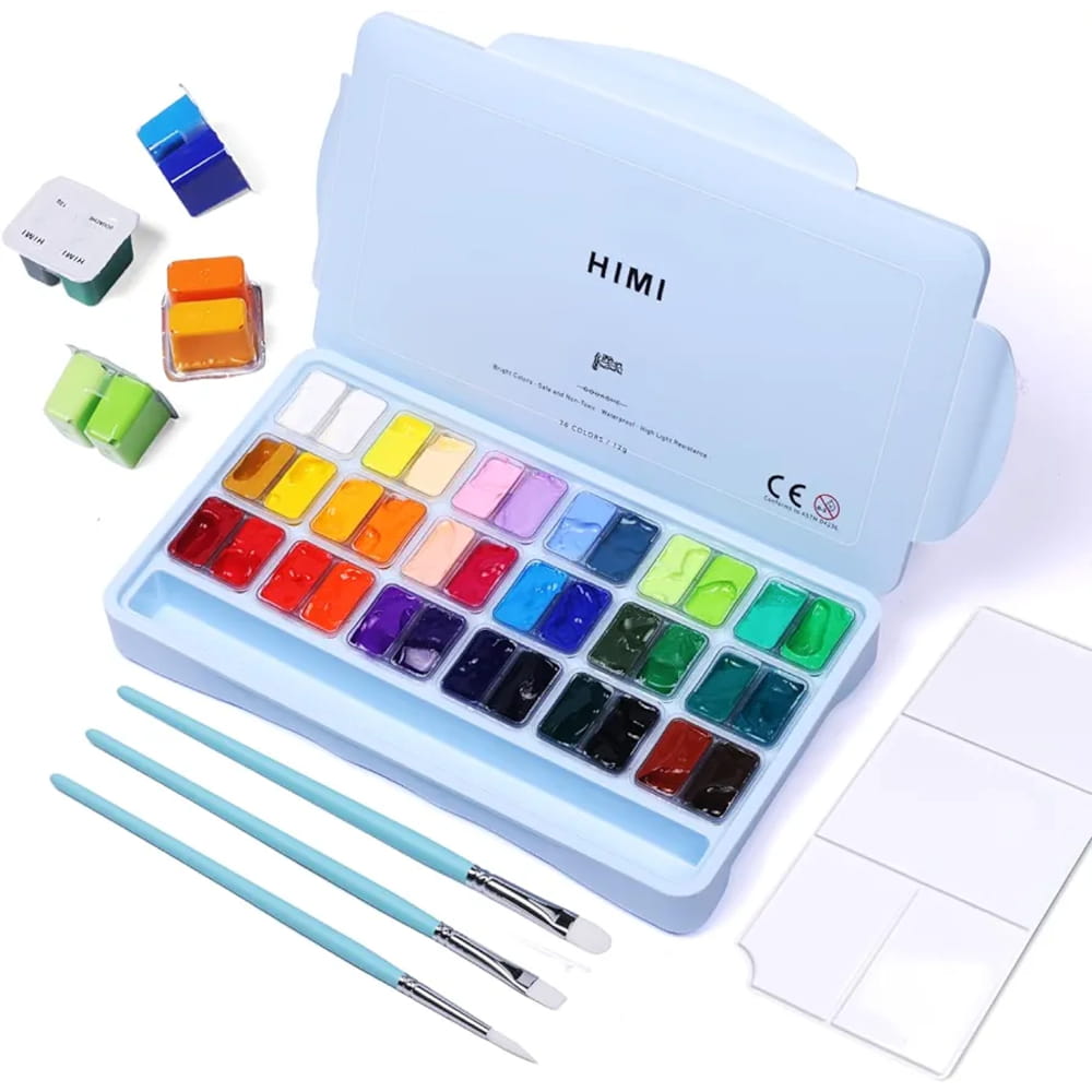 Seturi guase HIMI Twin Cup cu pensule – culori vibrante, textura cremoasa si calitate profesionala pentru pictura, ilustratii si arta moderna.