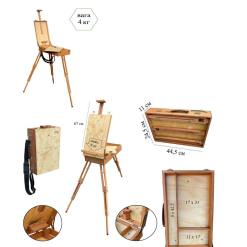 Sevaletul trepied cu caseta Artbox 1 este alegerea perfecta pentru pasionatii de pictura care apreciaza functionalitatea si durabilitatea. Construit din lemn de fag, acest sevalet de teren combina perfect stabilitatea cu un design compact, usor de transportat. Este dotat cu o caseta pentru culori, oferind spatiu suficient pentru depozitarea materialelor esentiale, avand dimensiunile de 44 x 24.5 x 11 cm.